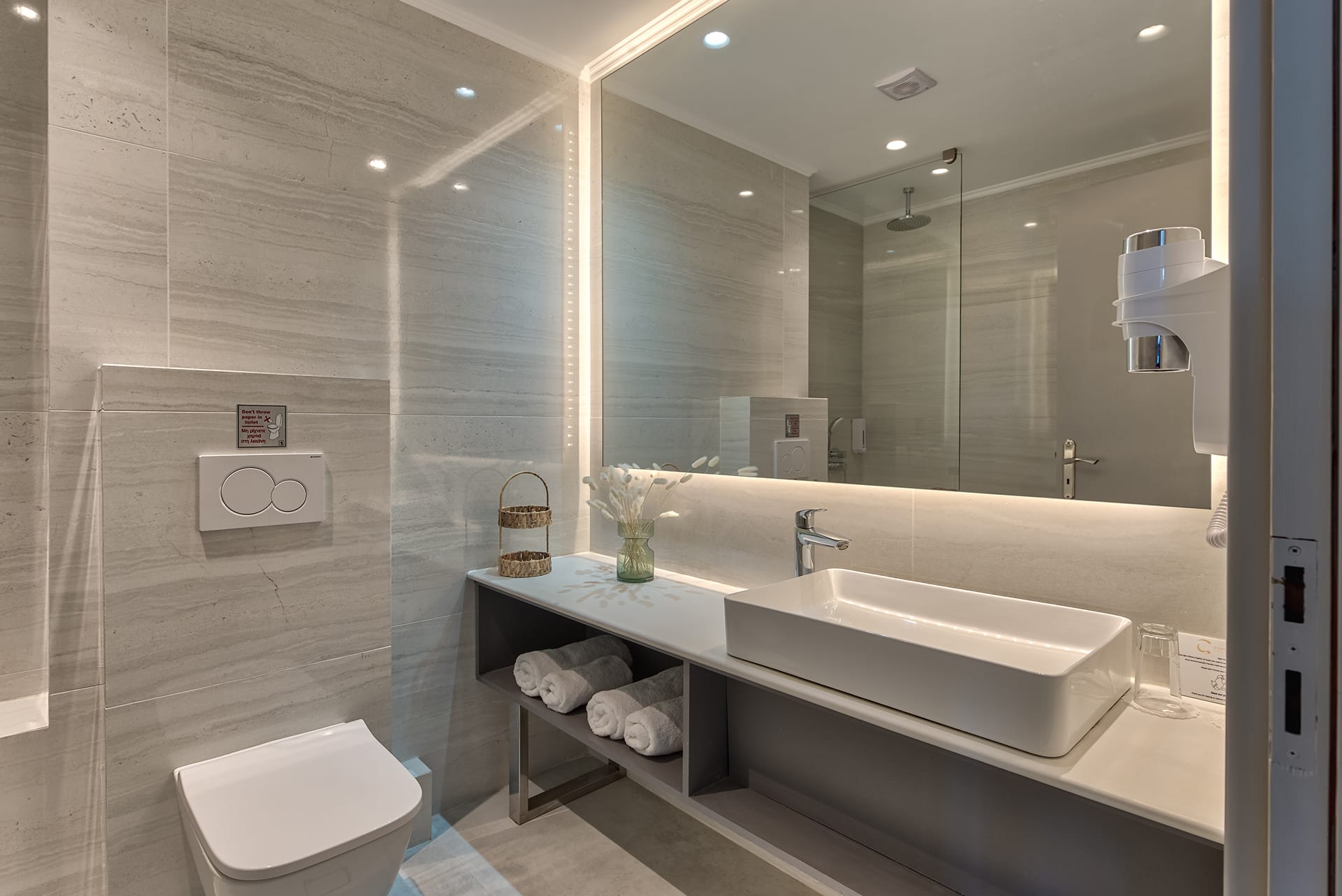 The second room has a double bed with its own bathroom with bathtub also, TV and A/C.